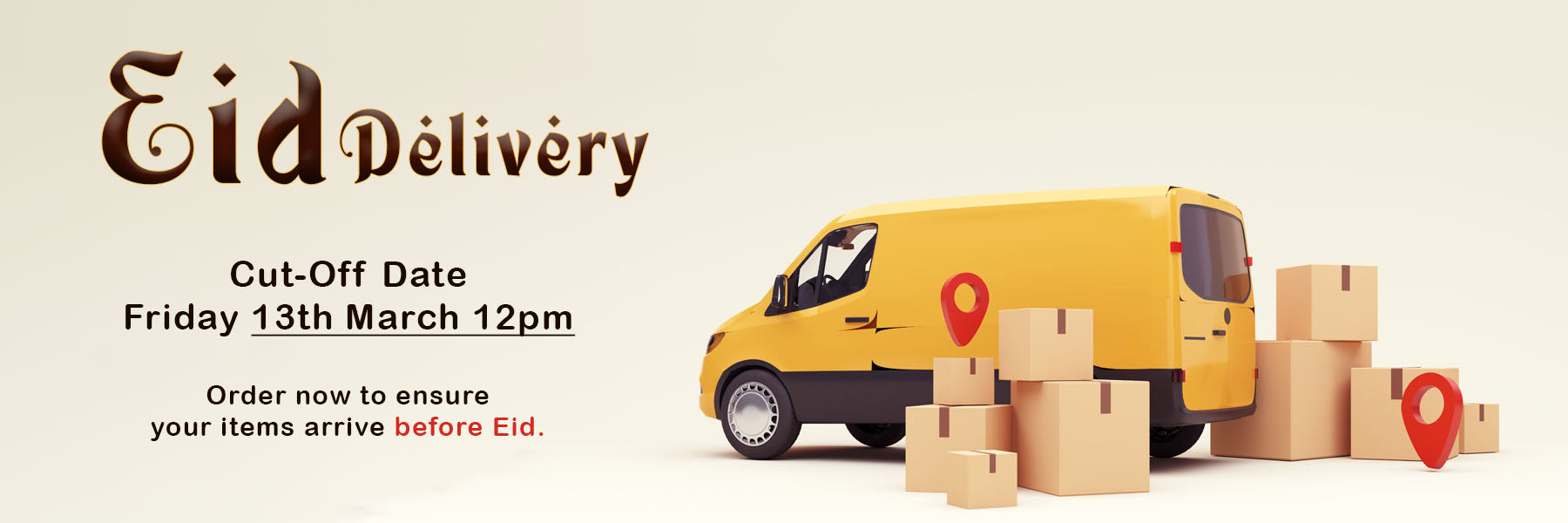 Order now to ensure your items arrive before Eid.