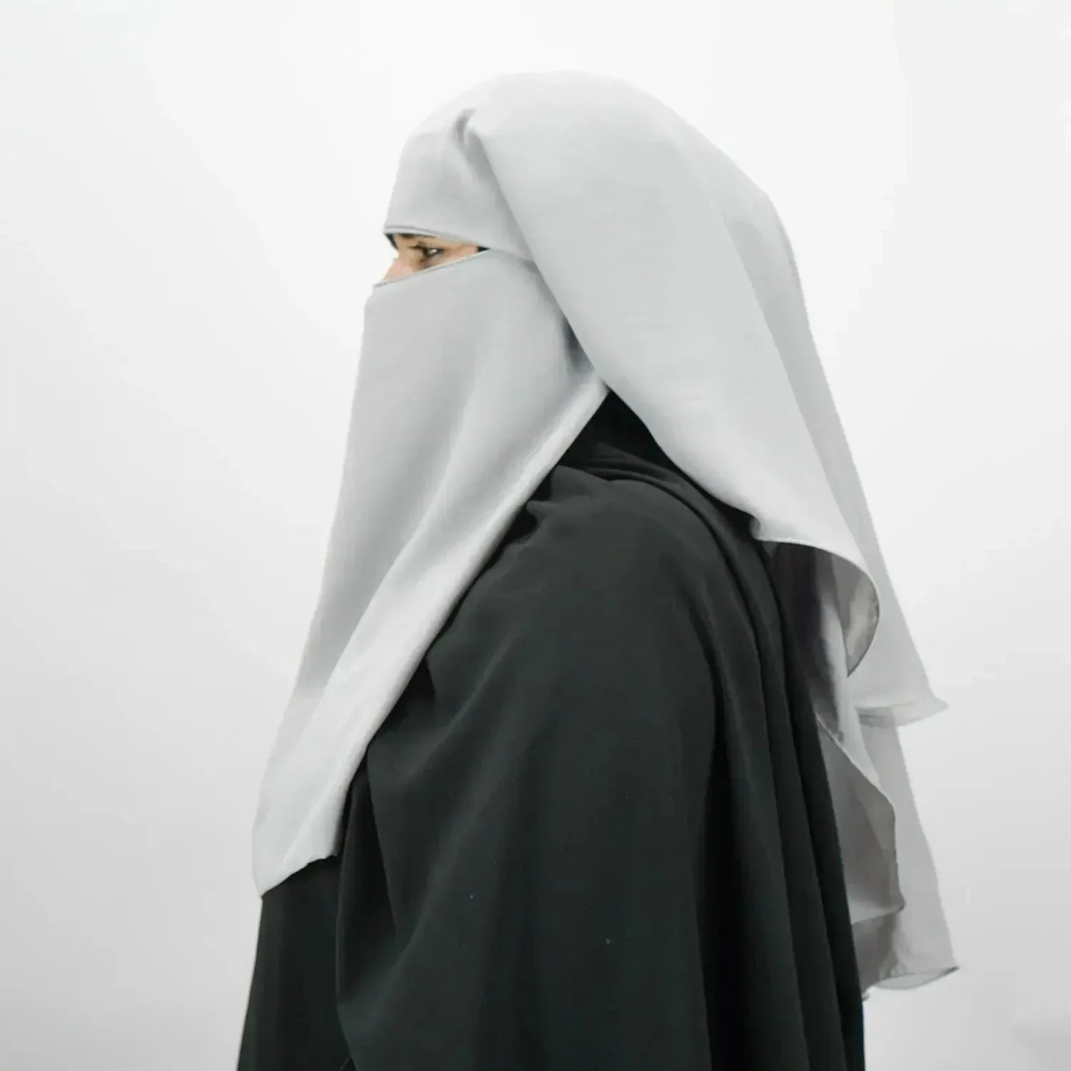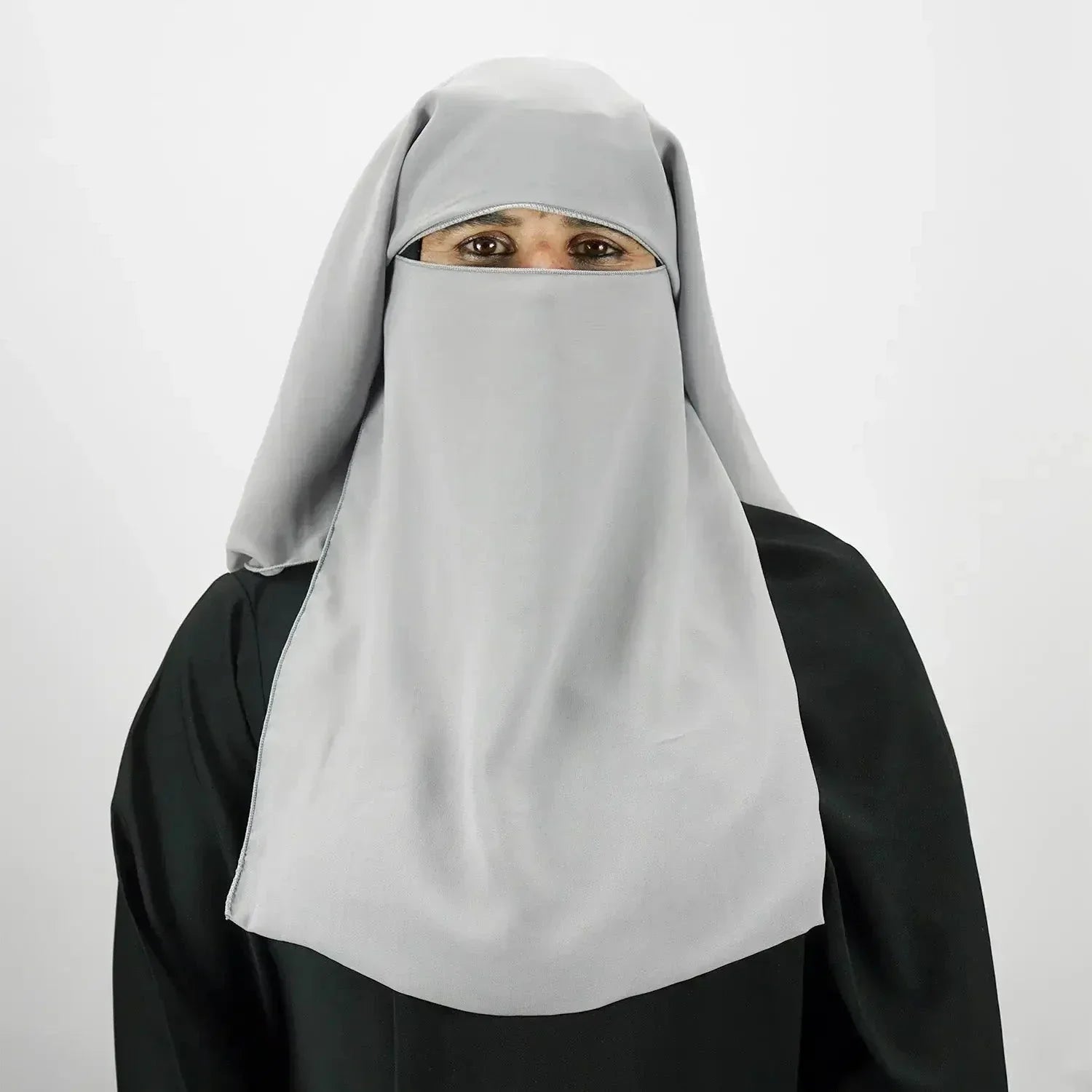This niqab features three breathable layers that provide enhanced coverage while maintaining a lightweight and airy feel. The adjustable tie-back design ensures a secure and customizable fit, making it perfect for extended wear. Its sophisticated grey shade effortlessly complements a variety of modest outfits, adding a stylish touch to your look.
