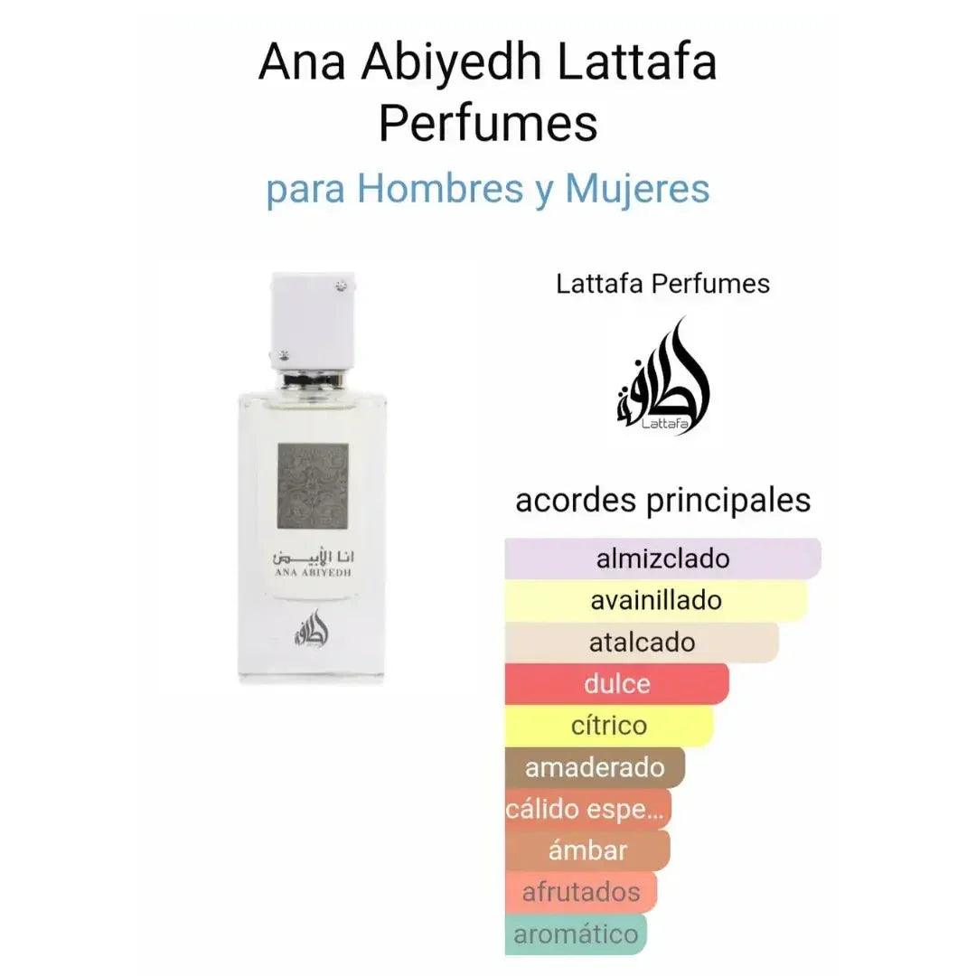 Ana Abiyedh Eau De Parfum by Lattafa is a luxurious fragrance that captures a blend of captivating notes, offering a truly unforgettable olfactory experience. Perfectly balanced and versatile, this fragrance is a true expression of sophistication, with a rich fusion of musk, spices, and warm woody accords.