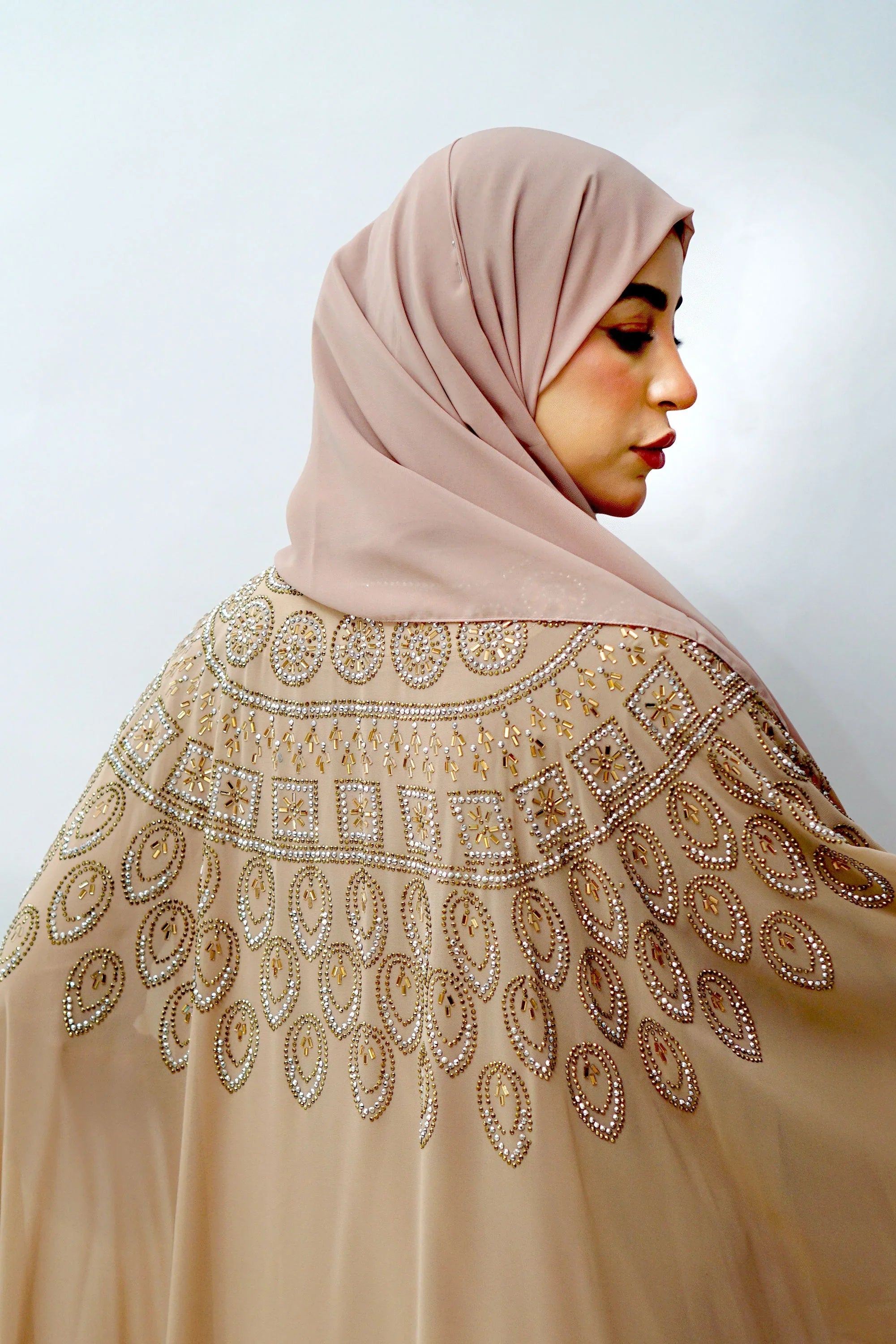 Luxury Embellished Nude Kaftan – Crystal Handwork Design