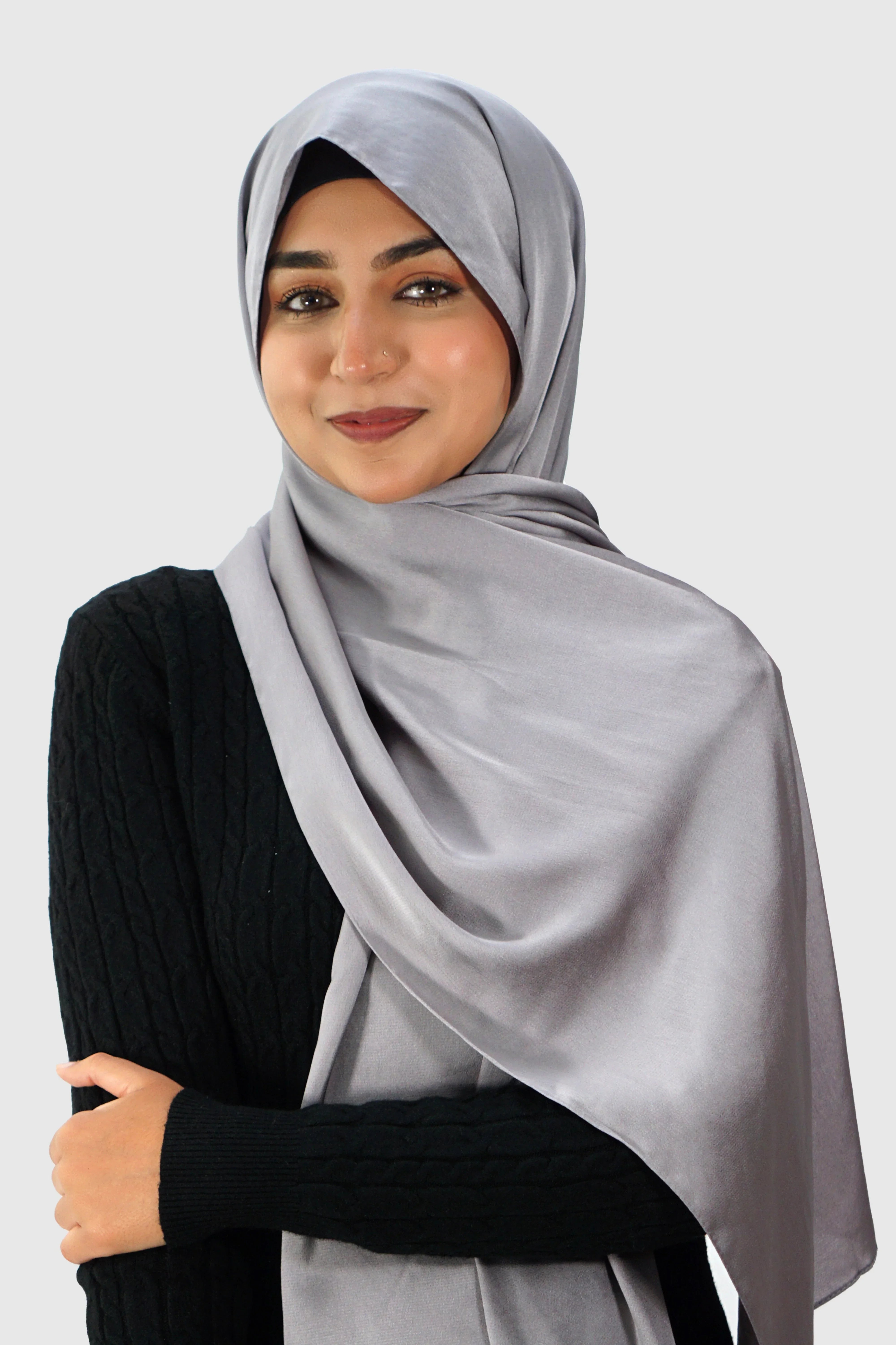 Discover the Elegance of Luxury Satin Hijab in Light Grey