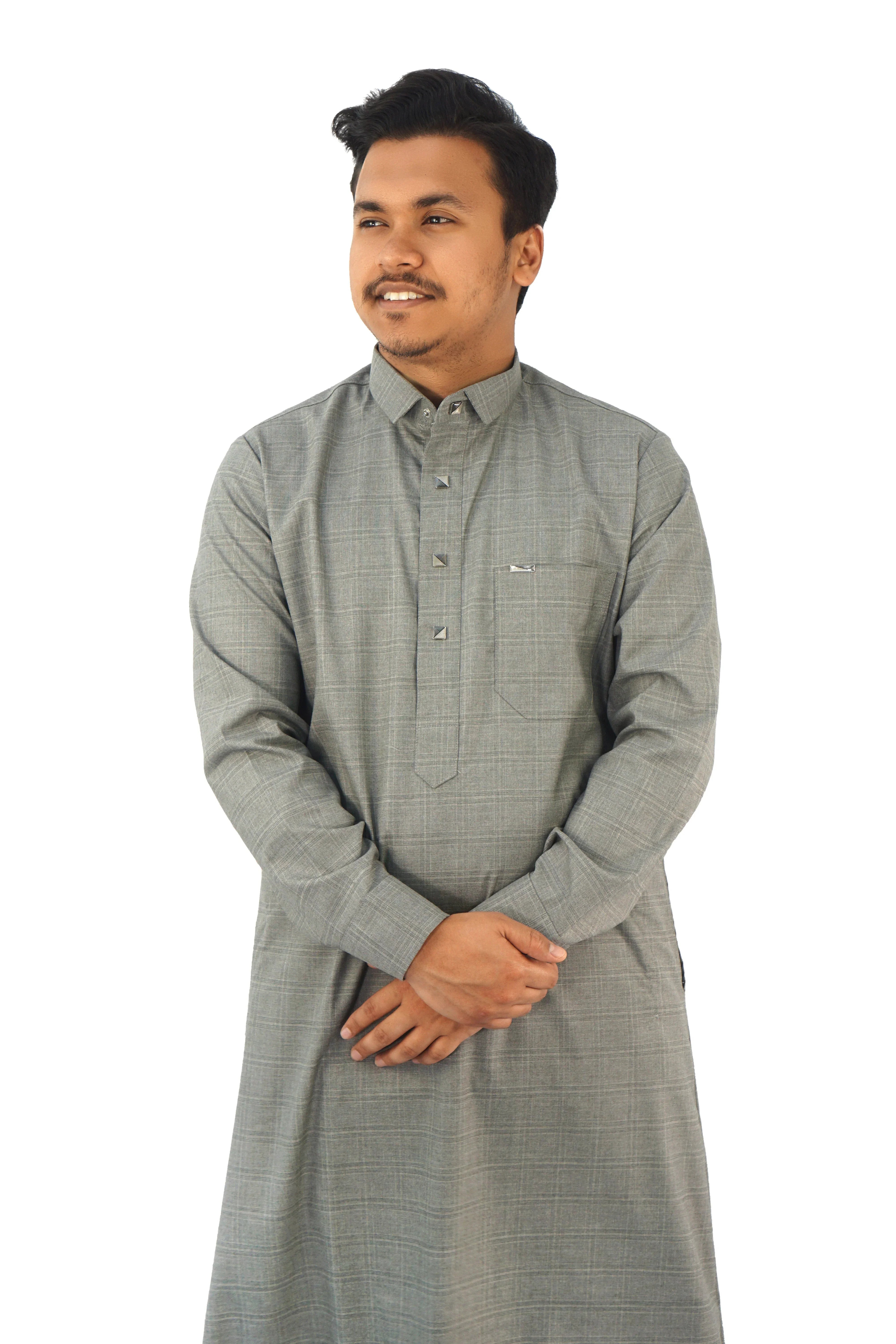 Men's Classic Ash Grey Thobe – Elegant Checkered Design