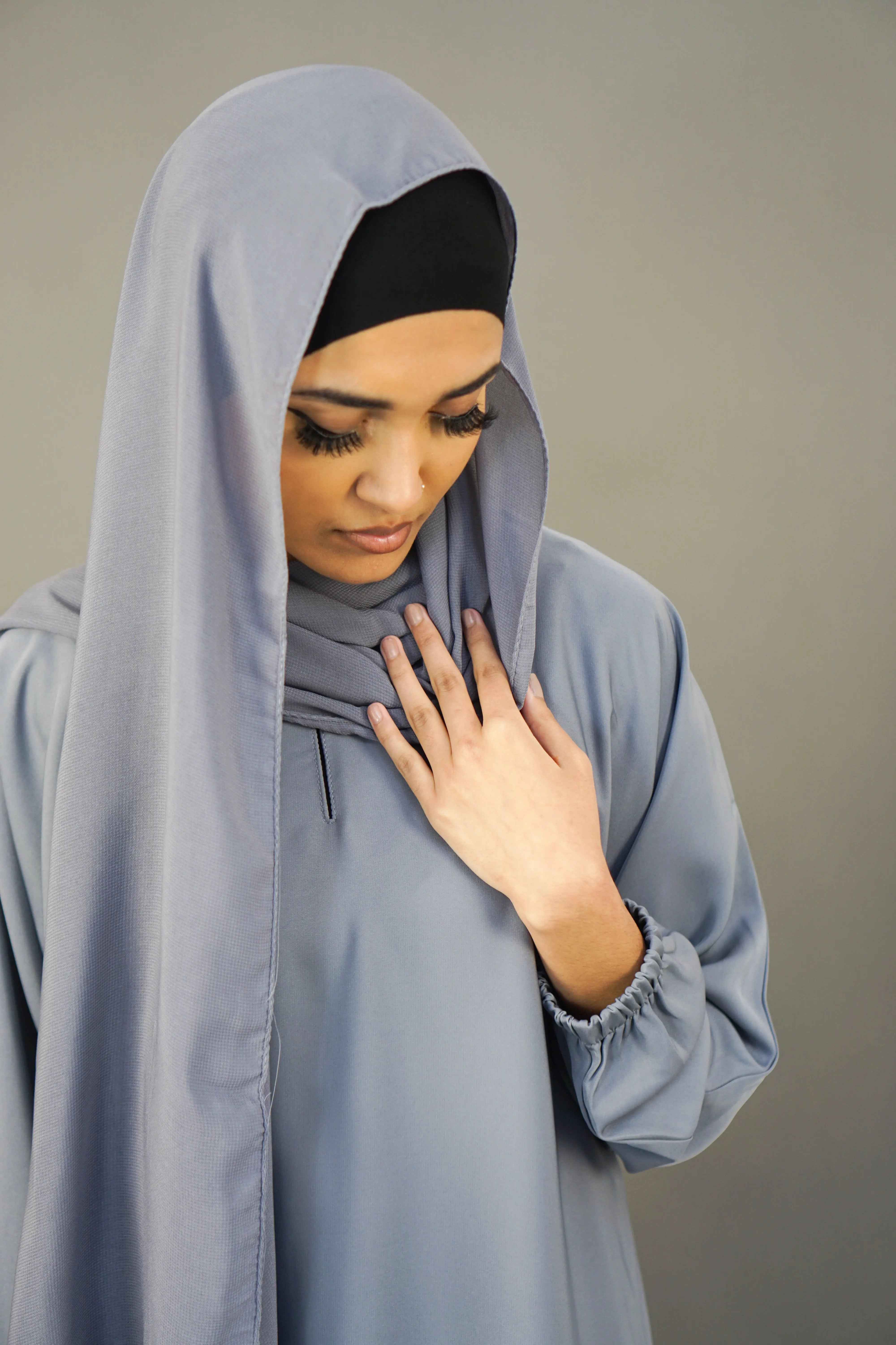 Embrace effortless elegance with this Plain Elastic Sleeve Abaya, crafted from luxurious premium Nidha fabric renowned for its soft, lightweight, and breathable feel. The subtle grey shade brings a modern, refined touch—perfect for both everyday modest wear and special gatherings.