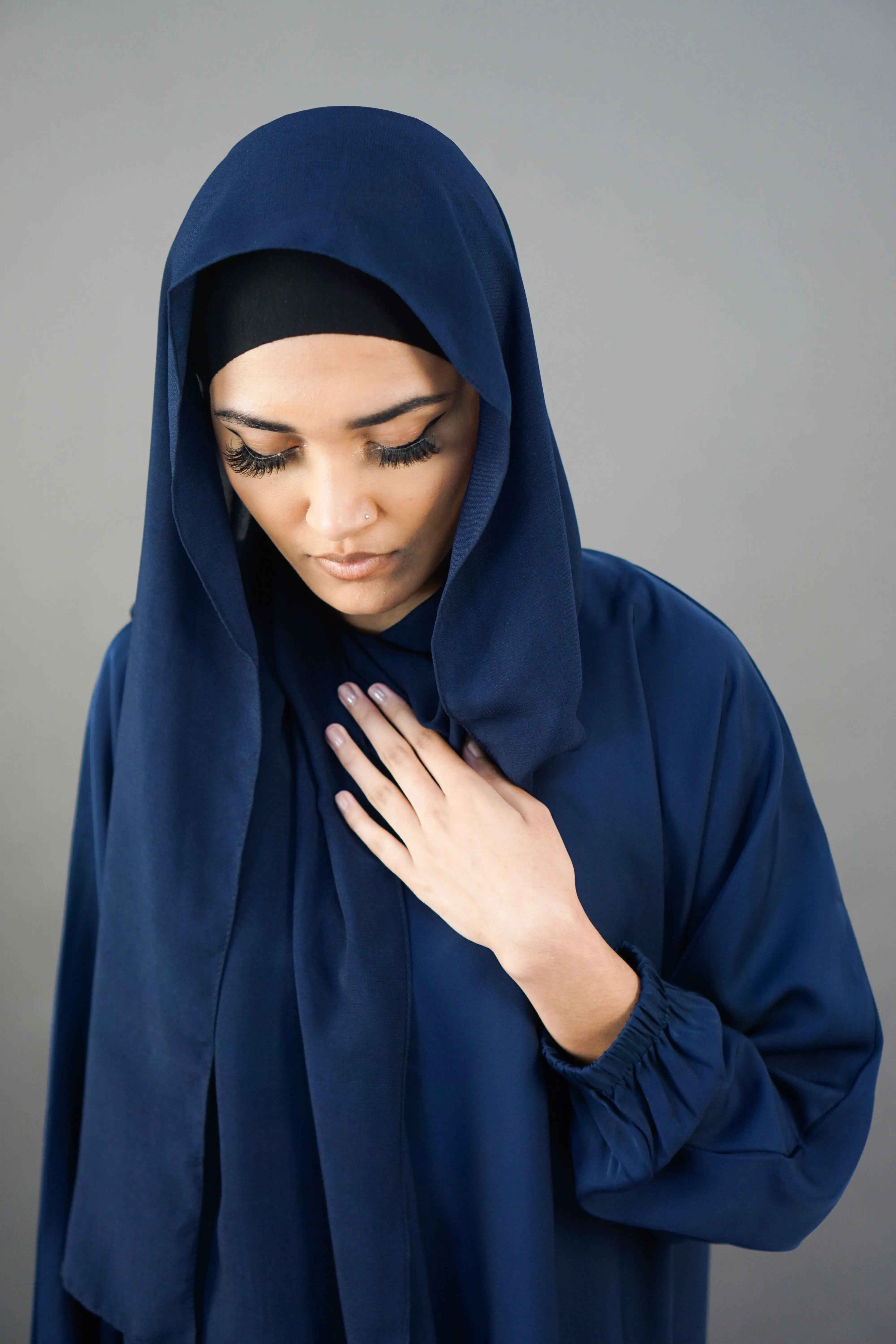 Discover refined modesty with this Plain Elastic Sleeve Abaya, beautifully crafted from premium Nidha fabric known for its smooth, lightweight, and breathable quality. The deep navy shade adds a touch of sophistication, making it a versatile choice for everyday wear, work, gatherings, or evening occasions.